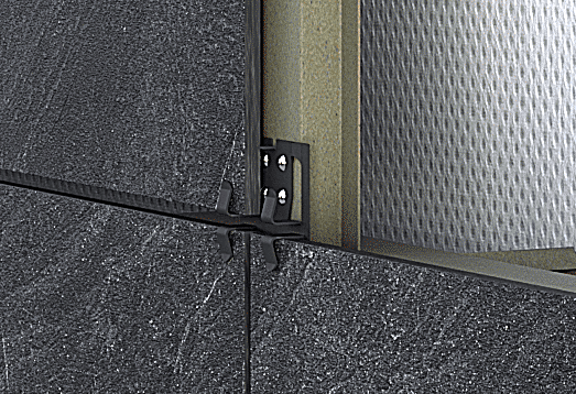 Навесной вентилируемый фасад под керамогранит этого типа представляет собой конструкцию с креплением исключительно в межэтажные перекрытия. Данный тип имеет ортогональный (вертикально-горизонтальный) вид размещения направляющих. Особенностью межэтажного крепления подсистем Вектор под керамогранит является монтаж несущих кронштейнов по горизонтальным поясам перекрытий.